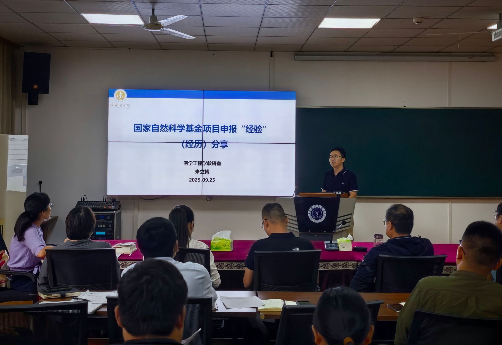 随后,赵劲松传达了学校国家级科研项目申报动员会会议精神,分析了学院2025年度国家级项目申报的基本情况及工作成效,指出存在的不足并提出相应改进方向与对策。同时,他还解读了2026年度国家级项目申报的重要时间节点任务及注意事项,并进行了具体布置。最后,学院2025年度国家自然科学基金项目获得资助者高彦峰、朱立博两位博士进行了申报经验分享,与会教师进行热烈的互动和讨论。(汪利斌/文 刘利/摄)