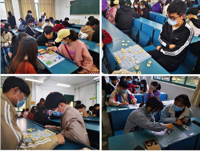 比赛分为三个场地,分别是五子棋、飞行棋、象棋,参赛选手48人。五子棋和象棋采用两两对决的形式实行淘汰赛制,五子棋实行四人对决淘汰赛制。每个队伍各有两名五子棋选手,一名象棋选手,一名飞行棋选手,根据选手表现进行团队累积加分。比赛中同学们热情参与,全神贯注地思索着每步棋的起落,沉着冷静、步步为营,经过激烈的角逐,最终评出一等奖一组,二等奖两组,三等奖三组。比赛结束后辅导员老师为获奖团队和个人颁发了奖品并进行合影留念。