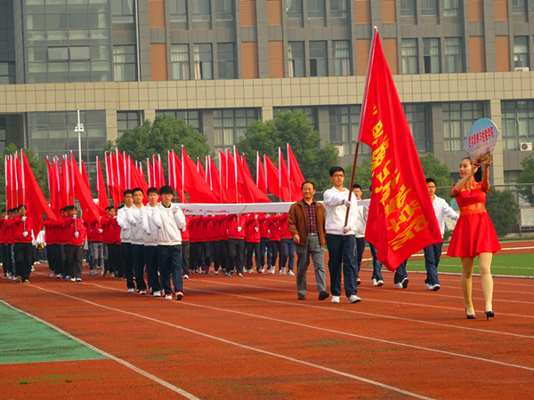 | 2014年11月2日,我校第35届运动会正式拉开序幕。开幕式上,彩旗招展乐声飞扬,医学影像与检验学院方阵迈着铿锵有力的步伐随着慷慨激昂的运动员进行曲依次入场,“影检生工,谁与争锋,横扫赛场,唯我称雄”的口号响彻全场。医学影像与检验学院的学子个个昂首阔步,精神饱满,其积极向上的风貌征服了全场观众,看台上响起了雷鸣般的掌声。