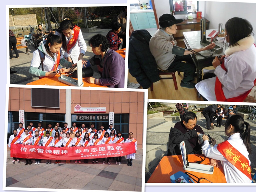 3月22日至23日,我院学雷锋志愿者服务队在地大橡树园、春江绿岛等小区组织开展志愿服务活动,受到到社区居民的热烈好评。 志愿者们在小区入口处摆起桌椅,热情地为来往居民进行身体常规检查,宣传春季流行疾病相关注意事项和预防措施。志愿者们还从社区居委会了解到小区空巢老人的情况,在工作人员的带领下来到这些老人的家中,为他们进行测量血压等常规检查,陪他们聊天解闷,并反复叮嘱老人们注意日常生活饮食,加强身体锻炼。义诊行动不仅为社区居民们送来了健康,更带来了皖医学子们的精神关爱。