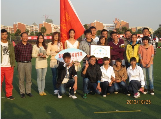 10月22日上午八点,williamhill中文第三十四届体育运动会在田径运动场成功开幕,经过三天的激烈比赛,我院在本次运动会上取得了良好的成绩。 开幕式上,我院方队昂首阔步、精彩不断,“影检生工,谁与争锋”的口号响彻全场。体育运动表演中,由我院300多名学生组成的广播体操表演队伍,用整齐划一的向上风貌征服了全场观众。