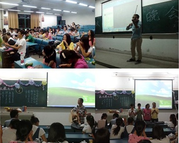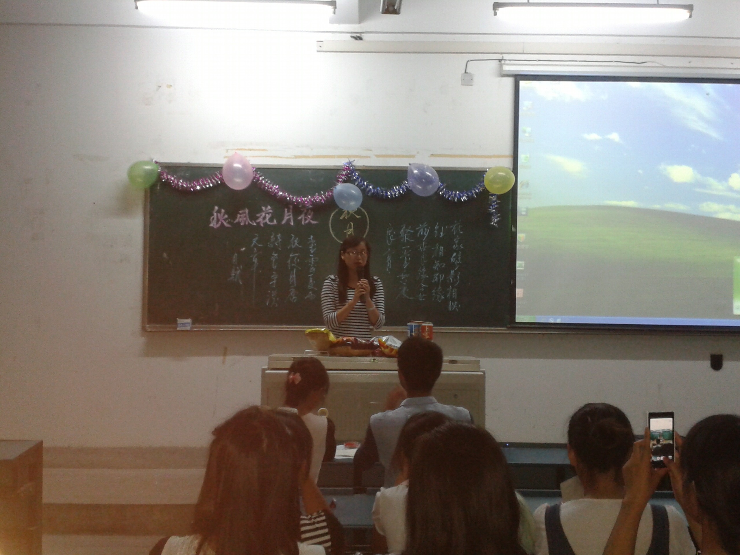 月到中秋分外明,军训离家倍思亲。为了给因军训而不能与家人团聚的2013级新生送上节日的祝福,让他们感受到皖医这个大家庭的温暖。9月19日晚,医学影像与检验学院为新生举办了中秋联谊晚会。2013级辅导员徐梦琪及部分留校老生陪新生们一起度过了一个难忘的中秋之夜。 欢歌笑语,处处绽放 三个专业的12个班级都为这次晚会进行了精心的准备,虽然白天还要在炎炎烈日下开展军训,但是丝毫没有影响到同学们的热情,从借用教室、准备道具到购买礼品、装饰会场,大家都忙得不亦乐乎。晚会上同学们准备的节目也是精彩纷呈,歌曲表演、吉他弹唱、小提琴演奏、小品相声博得了大家的阵阵掌声,教学楼里处处洋溢着节日的欢乐气氛。