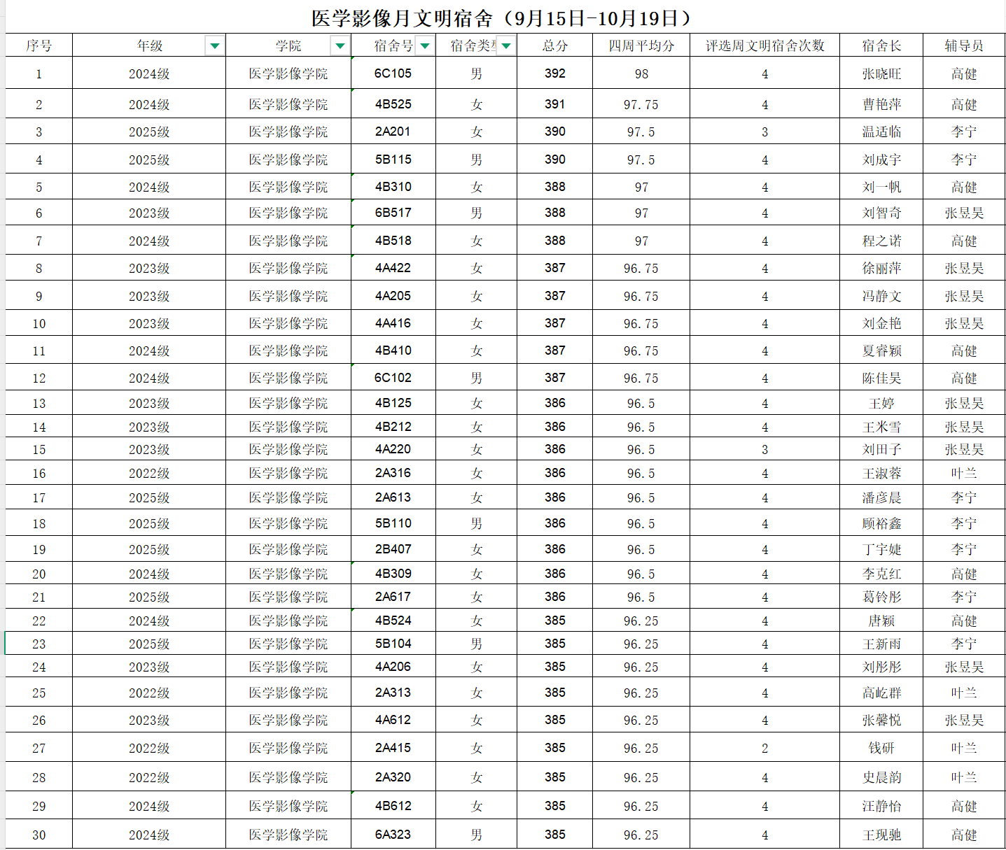 据《williamhill中文“安全文明宿舍”评选办法 (修订)》和《williamhill文明宿舍评选实施细则》文件要求及评选标准,共评选30间“月文明宿舍”,现进行公示。