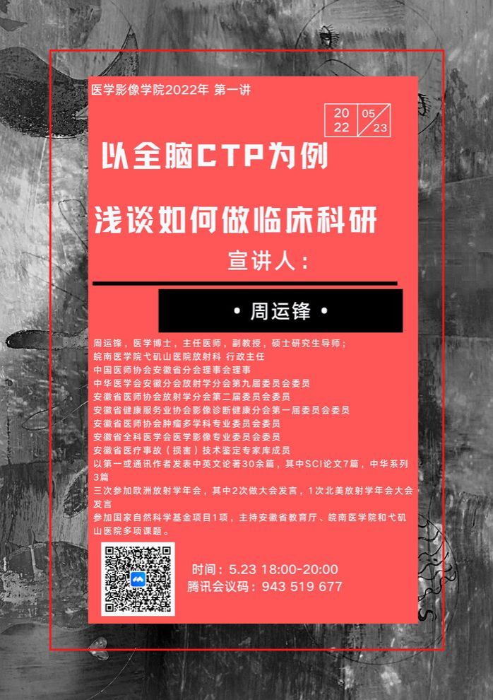 学术讲座:以全脑CTP为例 浅谈如何做临床科研