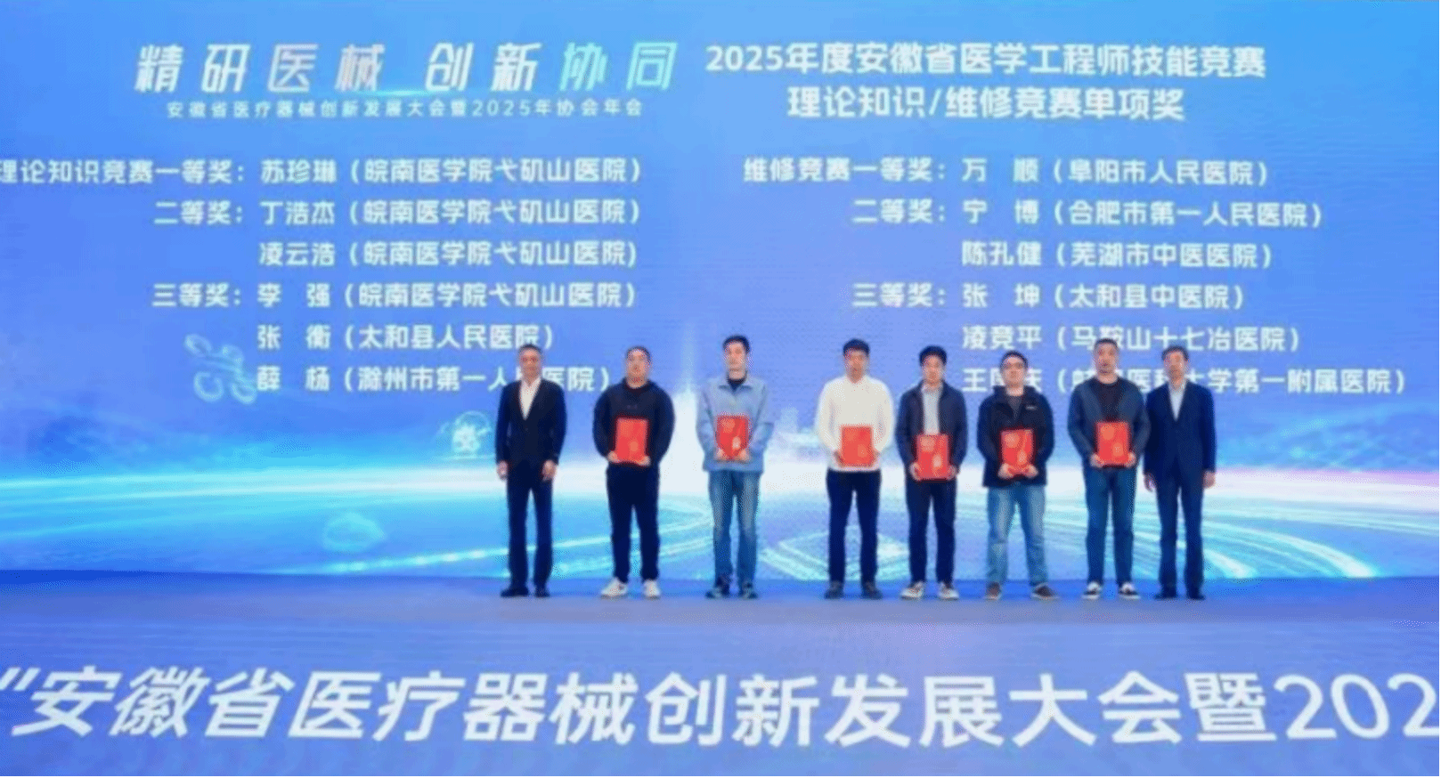 近日,安徽省首届医学工程师技能竞赛决赛于合肥顺利收官。本次竞赛经安徽省卫生健康委、安徽省总工会审批立项,由安徽省医学装备质量控制中心主办,系省内首次面向医学工程师技能举办的省级赛事,旨在搭建医学工程领域的交流平台,提升从业人员的专业素养。我校williamhill医学装备学教研室教师组成的代表队在比赛中表现优异,从众多参赛队伍里脱颖而出,荣获多项重量级奖项。