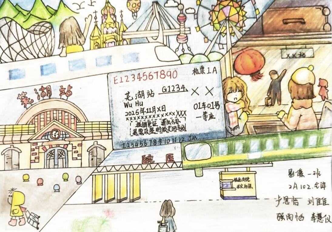 活动设置“记忆站台·票根故事会”“色彩车间·票根涂鸦社”“再生工坊·票根改造站”三大系列,鼓励学生以文章、绘画、手工等形式,讲述与车票相关的真实故事,或对票根进行艺术再创作。在提交的作品中,有些用文字续写着记忆中自己与票根的故事,以平常的视角、细腻的笔触,展现一个个温情的画面;有些用画笔再现了曾经纸质化车票串联起旅途的场景,通过温暖色调渲染出车站里的温馨。这些作品不仅是对纸质车票的温情告别,也承载着同学们无数的欢乐与感动,是对数字化中国的有力见证。同学们在创作中不仅可以回味往昔旅途中的美好,也更能感受新时代交通发展的便捷与进步,从而增强对国家发展的认同感与自豪感。