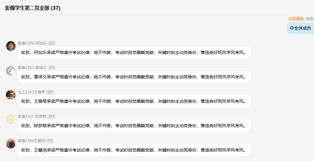 此外,学院着力加强考风考纪监督与帮扶关怀。在强化纪律约束的同时,“一站式”学生社区也注重人文关怀。学生第二党支部组织成绩优异的学生党员开展考前复习答疑、心理调适辅导,帮助学业困难学生缓解焦虑情绪,掌握科学复习方法,鼓励他们通过自身努力取得真实成绩。学生会也积极行动起来,提醒同学们遵守考试时间,带齐相关证件,以平和心态迎接考试。